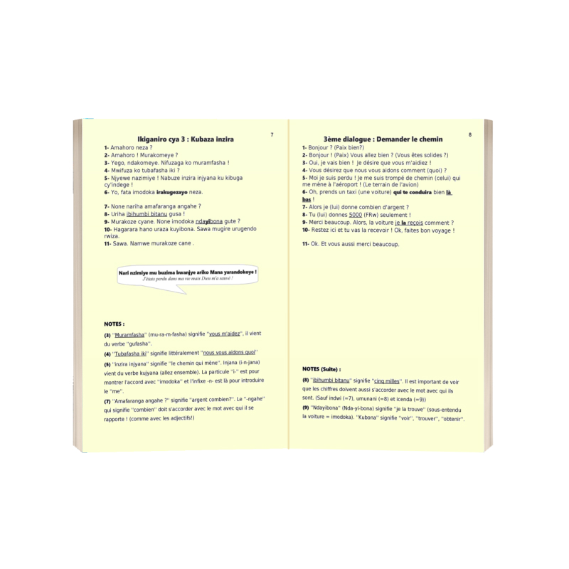 Ce livre idéal pour les niveaux intermédiaires, te permettra de maitriser le KINYARWANDA. En effet, il est axé essentiellement sur des enseignements pratiques qui vont te permettre de t'habituer à la mélodie de la langue. Ce livre contient 50 dialogues qui t'immergeront dans la culture rwandaise. En bref, ce livre te permettra de briser la barrière de la langue.